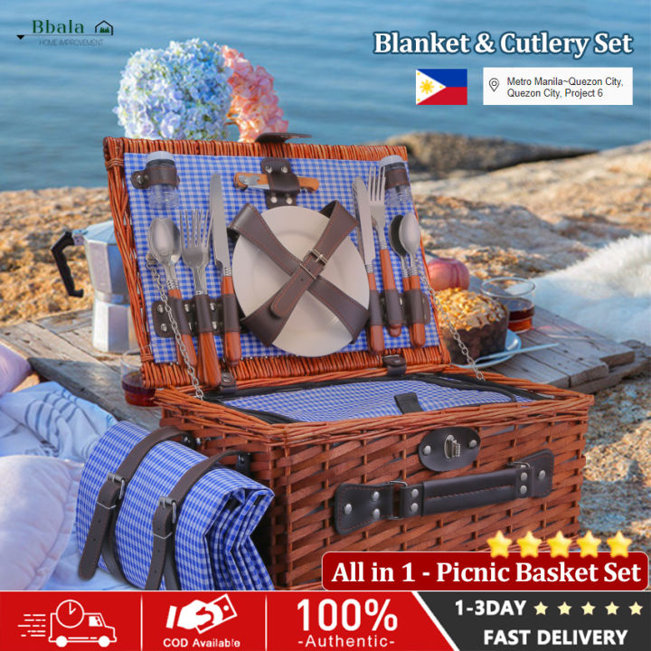 Alfresco 4 Person Picnic Basket Baskets Blue Deluxe Outdoor Corporate Blanket Park Camping Offers Picnic Baskets For 4 buy picnic baskets online to enjoy discounts and deals with shopee malaysia! The stylish red and white checkered lining and beautiful design add. wicker picnic basket for 4, 4 person picnic kit, willow hamper service gift set with blanket portable bamboo wine snack. the basket has a leather handle for easy carrying. Personalized picnic basket on wheels. Picnic Baskets For 4.